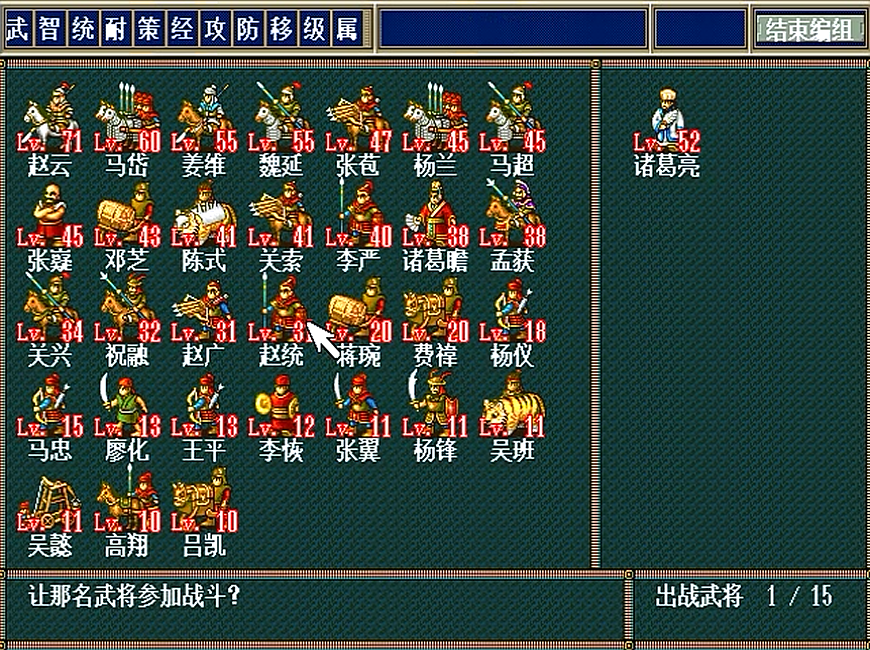 以上就是我方所有的骑兵,除去离队的4位,剩下的骑兵中,前中期用赵云、魏延、马超,后期就是赵云、魏延、姜维。我个人是这样使用的,总而言之,一切都是看属性,谁属性高,那就谁上!