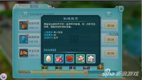 选择阵营后会有指引选择加入门派(阵营)。之后按照主线引导,升到20级会开放师门任务及秘境探索,可以在屏幕左上角活动选项中查看,秘境探索可以获得物品道具(建议首先探索小铜钱,15分钟一次可以快速提升秘境等级)。