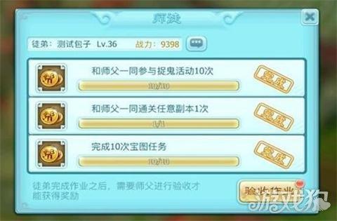 当玩家在满足以上条件后即可寻找师傅或者徒弟,之后点击师徒按钮并师徒组队到达指定的地点寻找npc从而进行正式的拜师。当师傅选择带领徒弟拜师后拜师成功,也就等于玩家又完成了一项大事。