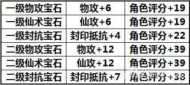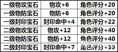 下面是各等级宝石加分数据,此次测试只有一级和二级宝石测试。