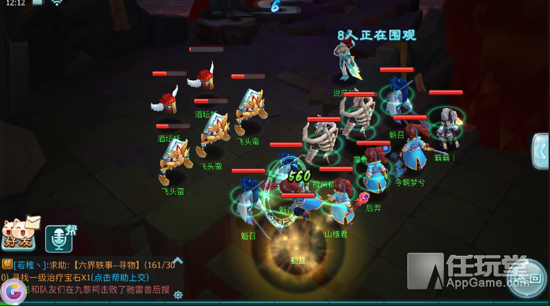 3、恢复 在两个冰泥被秒掉后,此时团队里的血量和蓝的用量想必是损耗较多,不要急着去攻击BOSS,先挑选血量较低的小兵进行攻击,争取等到有效时间使得团队元气恢复,折剑山庄可以在此时利用吸血技能给队友回蓝,唐门也可辅助巫月加血。