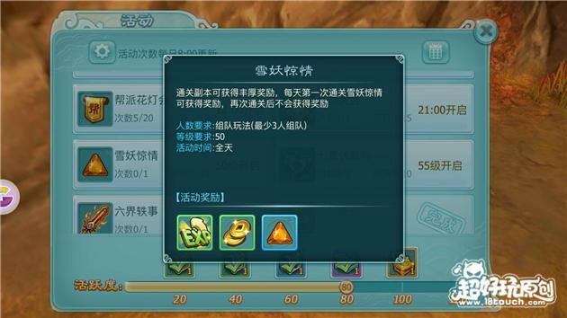 雪妖惊情:50级副本,每天第一次通关可获得奖励,后续通关则只获得功德值奖励,每天最多20点;