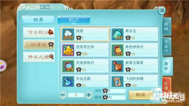 玩家可以在商城界面中,进入商会的积分兑换,使用功德值兑换特定的物品: