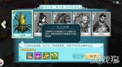 一句话攻略,大概意思是古藤精和小弟们会隐身技能。第一关难度不大,需要注意的是第二回合古藤精会放出一个全体隐身的技能,没有感知的人物/宠物是不能攻击的,第三回合又会全部显形,小草会单法,因此可以集火boss,封印小草,boss死了之后清小怪即可。