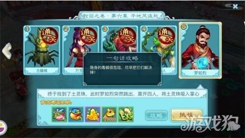 一句话攻略,战斗中会有隐身的蝎子,需要尽快消灭掉。第五关难度较大,小怪的群体伤害比较高,因此推荐用增加仙防的元灵阵。其中蝎子会隐身,如果boss受伤,后面的武士回给boss回大量血。