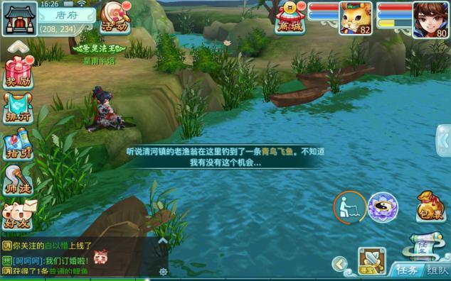 玩家处于可以垂钓的地图时,点击使用鱼饵即可自动寻路到最近的钓鱼点,点击包裹旁边的钓竿标志即可开始钓鱼。进入垂钓阶段后,需耐心等待鱼儿上钩,当提示拉杆时要尽快收杆,就能得到丰富的收获啦!