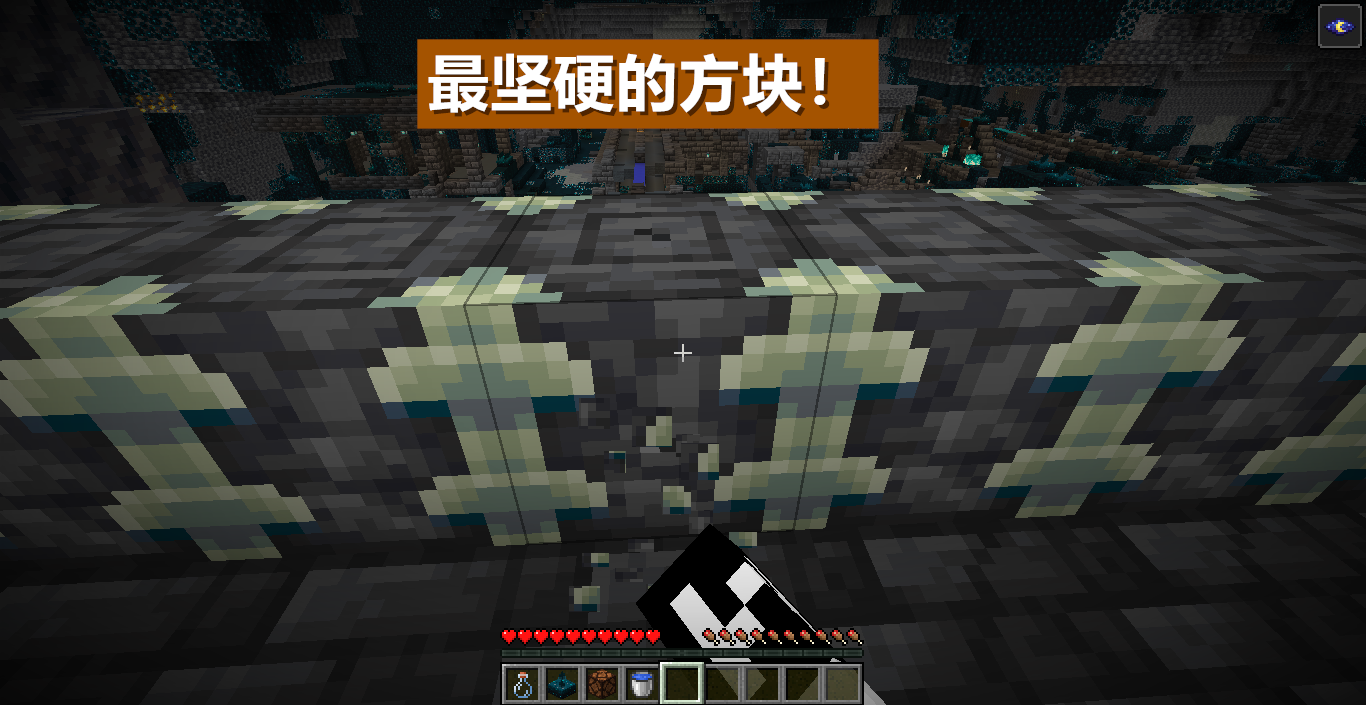 9、最坚硬的方块!远古城市中心的框架说是用一种不可破话的“强化深板岩”制作而成。但事实上持续撸83秒,就能撸破。空手撸和带工具撸的效果和时长是一样的。所以如果说《我的世界》排除掉无法在生存模式下撸掉的方块的话,强化深板岩是mc最坚硬的方块。