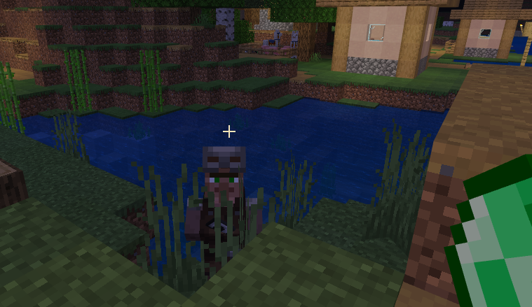 这个时候呢,我们可以利用一小点交易的特性,只要我们拿着绿宝石,村民就会企图跟着我们过来。