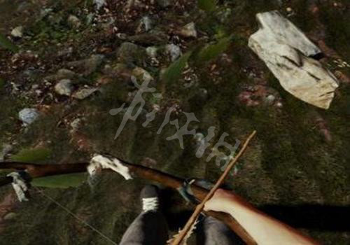 这也是游戏初期最常见的方式之一了,首先我们用树枝+布条+胶带制作成弓,然后羽毛+树枝做成弓箭,就是可以寻找兔子了。
