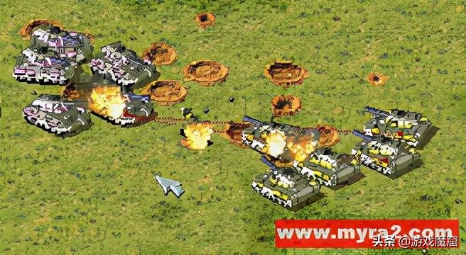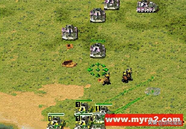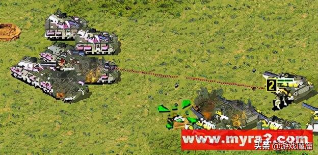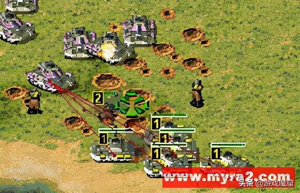 图一的目的是告诉红警新手朋友辅助兵挡炮弹的原理