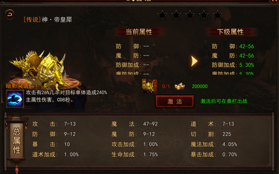 骑战系统是不同于传统意义上的骑马带路游戏的玩法,整个系统可以看作是其它游戏中的灵兽系统,是能够看成一个提升游戏玩家战斗能力数值以及提升游戏玩家伤害,提升游戏玩家攻击技能的一个附加BUFF系统。不过骑战系统也有一定的系统要求。游戏玩家骑术一定要达到10级,才可以开启御兽作战天赋,因此把自己的灵兽变成能够战斗的坐骑。游戏玩家获取灵兽的方式有很多种,可以通过捕捉,还可以通过购买来获取,每个灵兽在初始能力值上的差距并不是很大,随着游戏玩家培养程度的提升,灵兽所给玩家提升的空间也就越大,随着骑战专属技能的打开,骑战系统的魅力才会进一步的展现到游戏玩家面前。