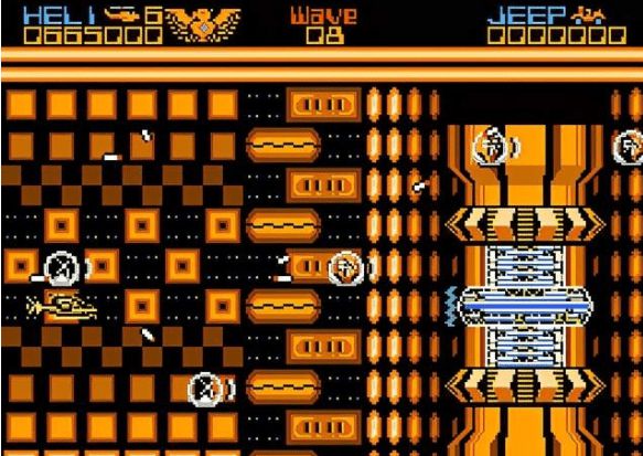 红白机版本自然是可以选择战车或是直升机了,话说当时你更喜欢使用哪个呢?虽然有不少高玩们表示,战车其实更简单一些,但是恐怕很多同学还是毫不犹豫的选择直升机吧。本作街机版其实是,三个功能键位的,不过Sammy针对红、白机两个键位的微调也让游戏的体验更加的舒服,尤其是战车,控制上、下方向键就可以直接一百八十度的调节炮台,比起街机,原版还需要组合按键才能调节向后射击角度的设定,简直是人性化太多了。加上直升机默认就是双方向发射炮弹的优化,也再次验证了我上面的结论,红白机版就是完全版呀。至于游戏的难度,其实是个见仁见智的话题了,不过大家也普遍认为boss战还是废命的根源啊,于是各路大神也挖掘了很多类似安全地带的bug位置。
