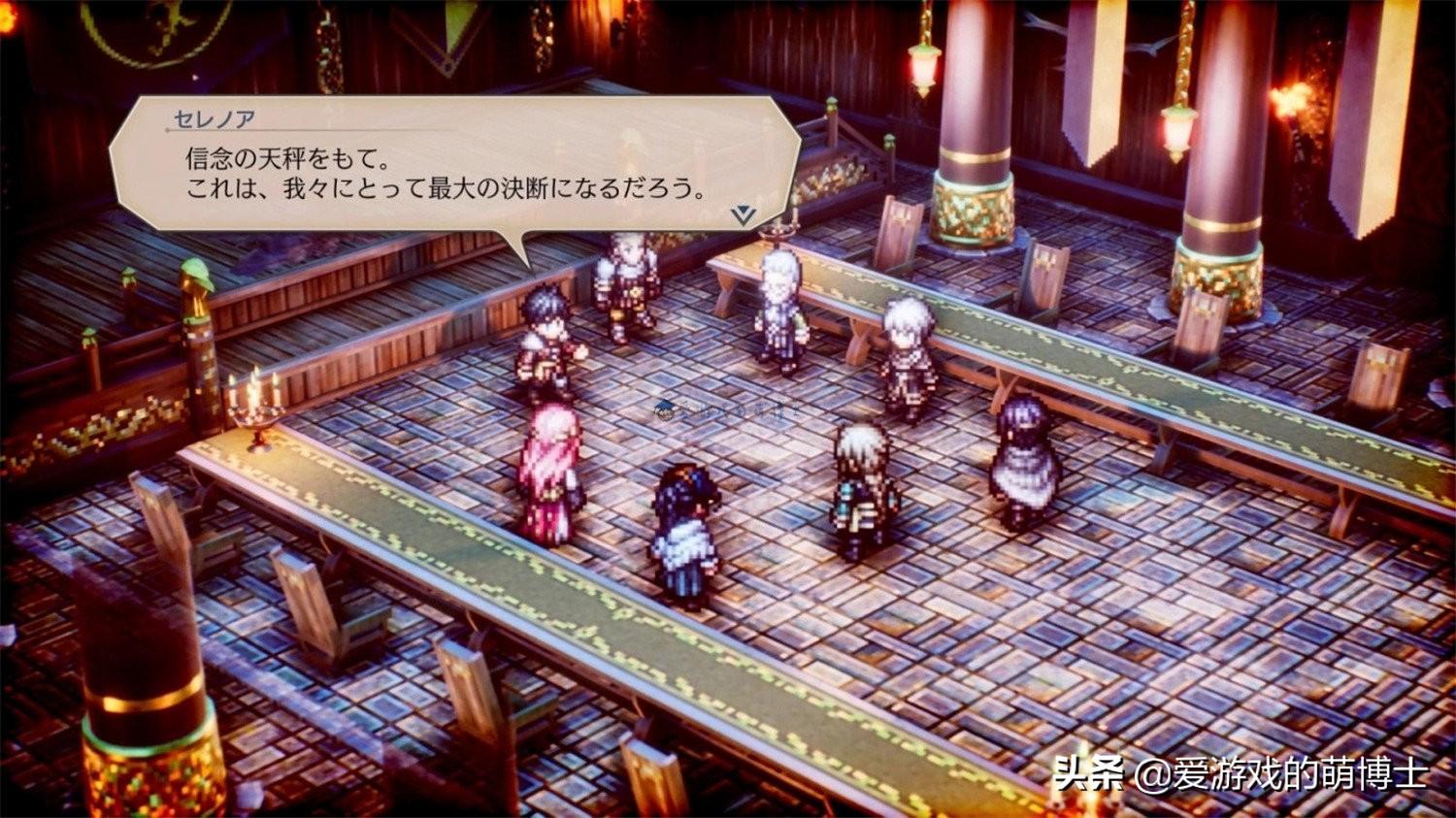 游戏里加入了所谓的“信念天秤”系统,这是一种剧情演出路线分歧的玩法。当我们碰上重大的事件必须要选择时,沃荷德家传神器“信念天秤”就出现了,让除了主角外的七位重要人物进行投票选择。我们虽然没有投票权,但是可在正式投票前说服、引导重要人物的投票倾向,最终获得自己想要的结果。有趣的是:有些说服选项需要在探索的时候去解锁。每个人玩的过程都不一样,导致剧情走向千变万化,而如果你想要某个固定的路线,势必要进行多次尝试。