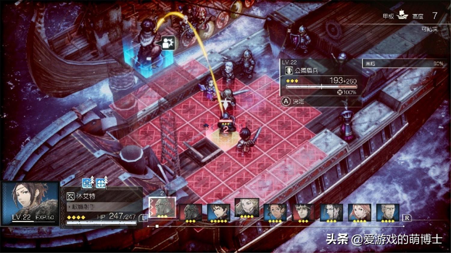 战斗方面,《三角战略》依旧是相当传统的日式战棋玩法,操作方面其实没有什么好多说的。不过,除了常见的地形高地落差等等战棋常见系统外,游戏里加入了属性攻击会造成地形变化的新设计!比如:冰属性魔法会在地面上留下一层冰块,火属性攻击会让冰块消失等等。一切的创新都是为了让玩家的战斗具有更多的战术变化性。