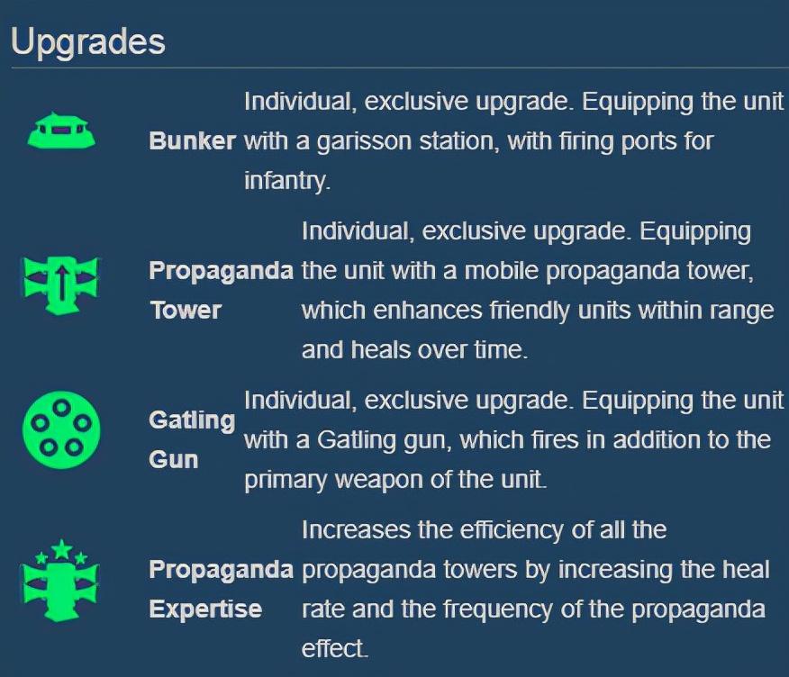 2.宣传塔:增加附近友军的射程,恢复他们的生命值;