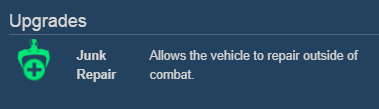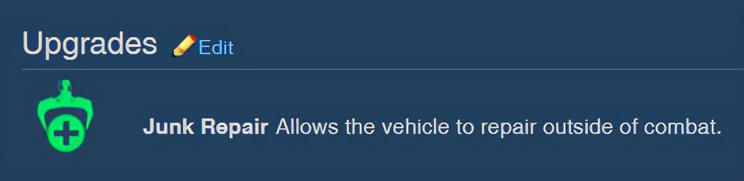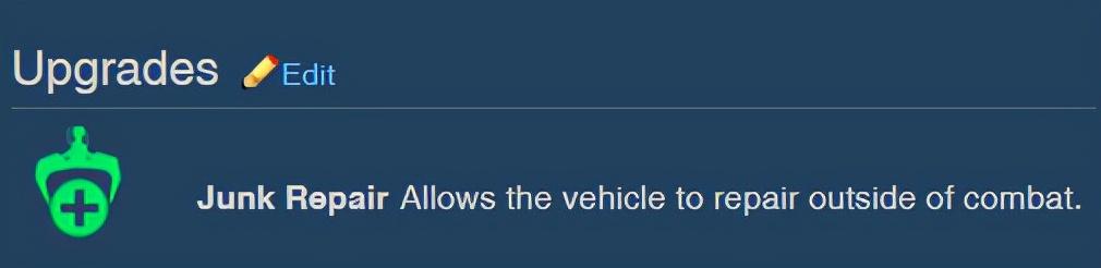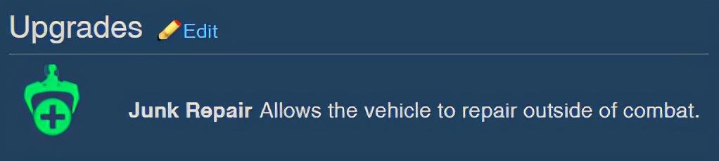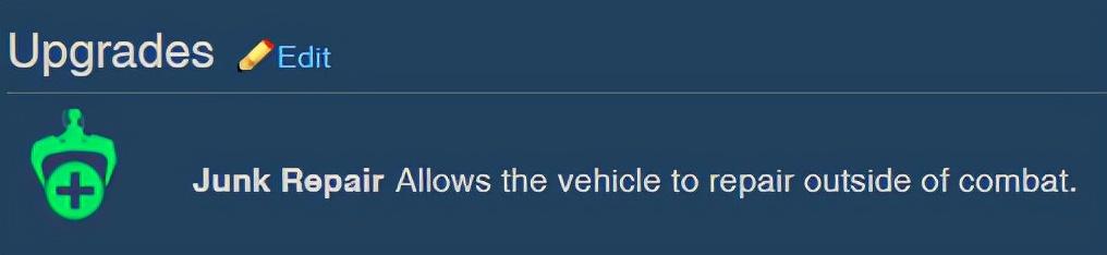 升级:垃圾修理:允许车辆在非战斗状态下自行修理;