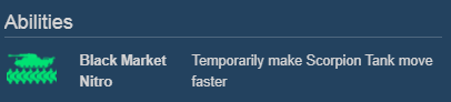 11>化学车Thrax将军(博士)专属的车辆,通过分发兴奋剂等提高步兵的能力,武器是1挺冲锋枪。
