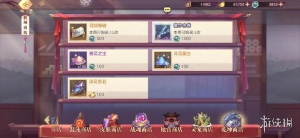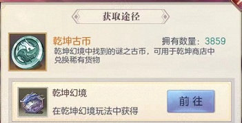 1、乾坤商店是消耗【乾坤古币】兑换各项资源的地方。