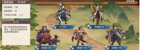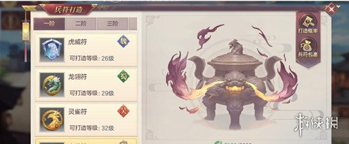 4、炼宝阁。炼宝阁是用来打造兵符的地方,魏蜀吴群分别都会有一个兵符,玩家除了开始的打造,到后面还要升级,以此来提高玩家的战力值,是一个提升战斗力很重要的存在。而打造兵符所需要的就是功勋。