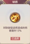 看对面阵容选择,如果有三个及以上防御性就选破盾吧,其它战意。如果要秒第一个,大概率是防御型,可以选择。