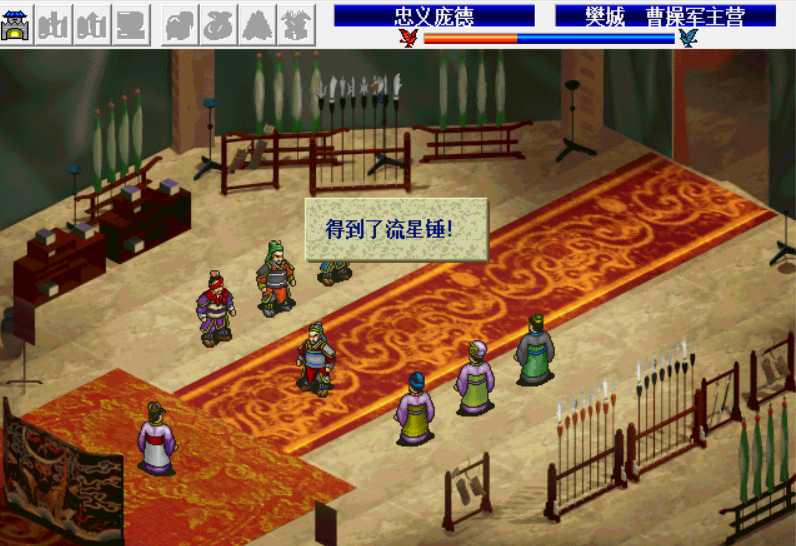 这里需要补充一点,如果想开全宝的话,那么红线有件宝物是必须要得到的,同时玩家也是面临取舍,那就是庞德的遗物流星锤,这件宝物只在红线中出现,如果在樊城救援战中,庞德没有战死,那么流星锤就得不到,必须把庞德送了才可以。那么是庞德的价值大还是流行锤呢?情感反面选庞德,实用性的话还是选流行锤。