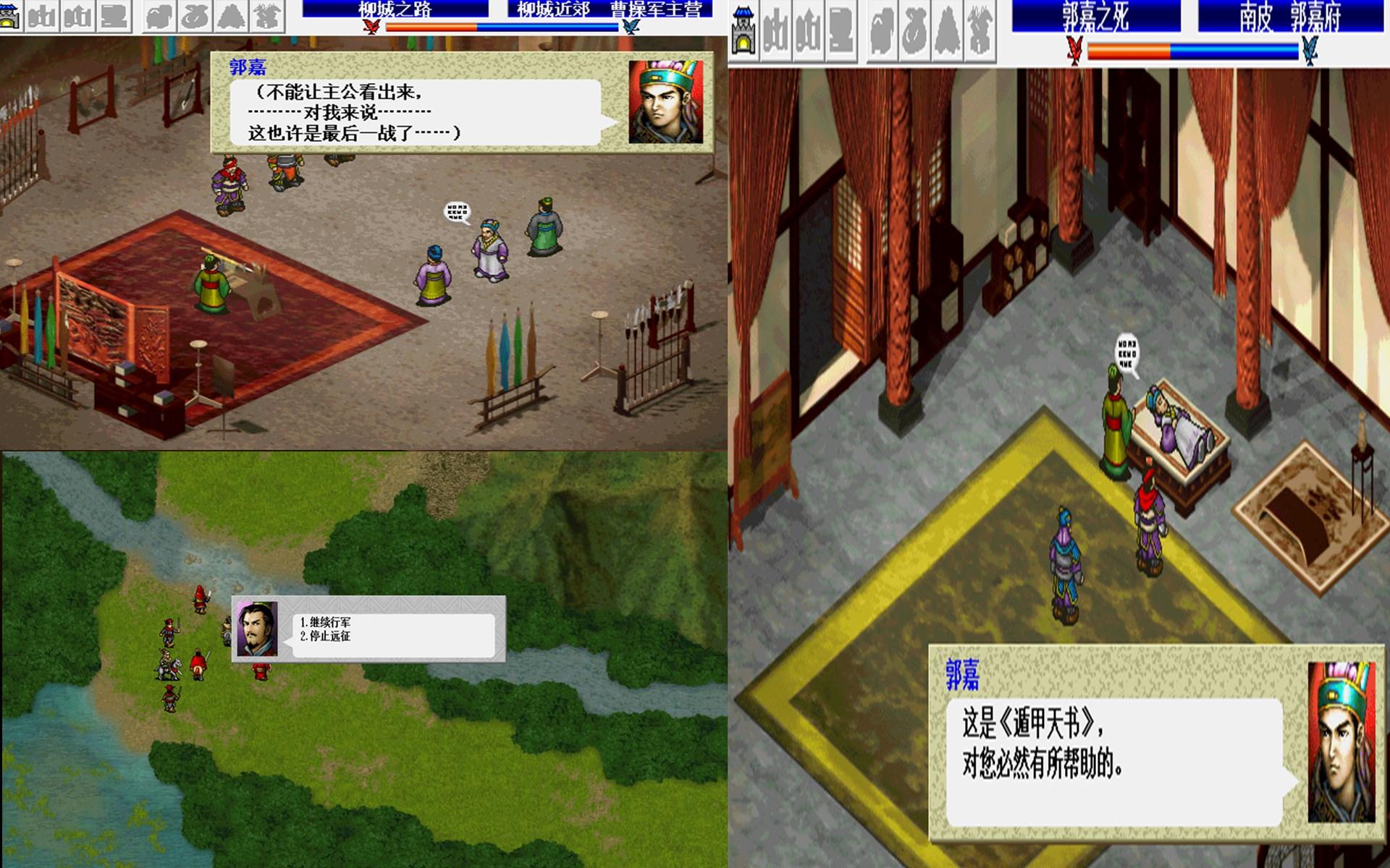这其实和典韦的凤凰羽衣一样,也是非常容易得到的,只要在柳城之战中不管郭嘉的病情,选择不撤退取得胜利后就可以了。过关后郭嘉死去,死前送上遁甲天书。这同样也只是关乎玩家情感。相信很多玩家会选择保郭嘉吧,就像宛城之战救典韦一样。