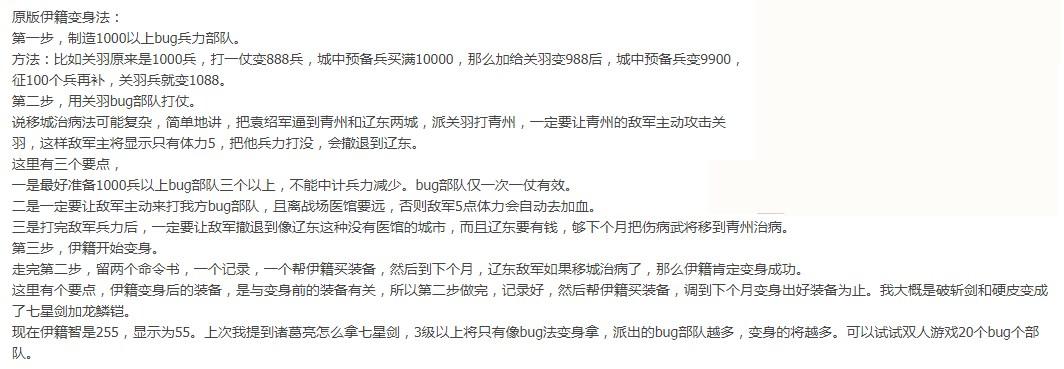 这是在网上找到的方法,没有去验证对错,应该可行吧,如果当年你利用过辽东城达成了伊籍变身,那是否就是这样呢?欢迎留言!