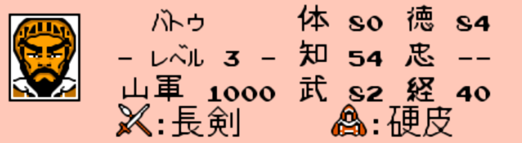 第四是马腾,体80,知54,武82,德84。属性比较平均,没有太高的也没太低的,算是比较中庸吧,武力最高可以成长到90。