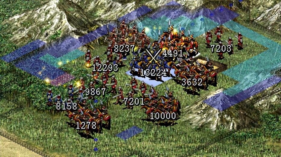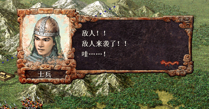 好在下一个回合两人收拾状态,虽然剩下5000人,但两人都是名将,战法都不错,夏侯渊的奇袭有“五”适合山地和森林,张郃的突击当然就是平地。两人坚持了两个回合并重创了对手,后面骑兵曹洪、步兵的徐晃和许褚赶到。