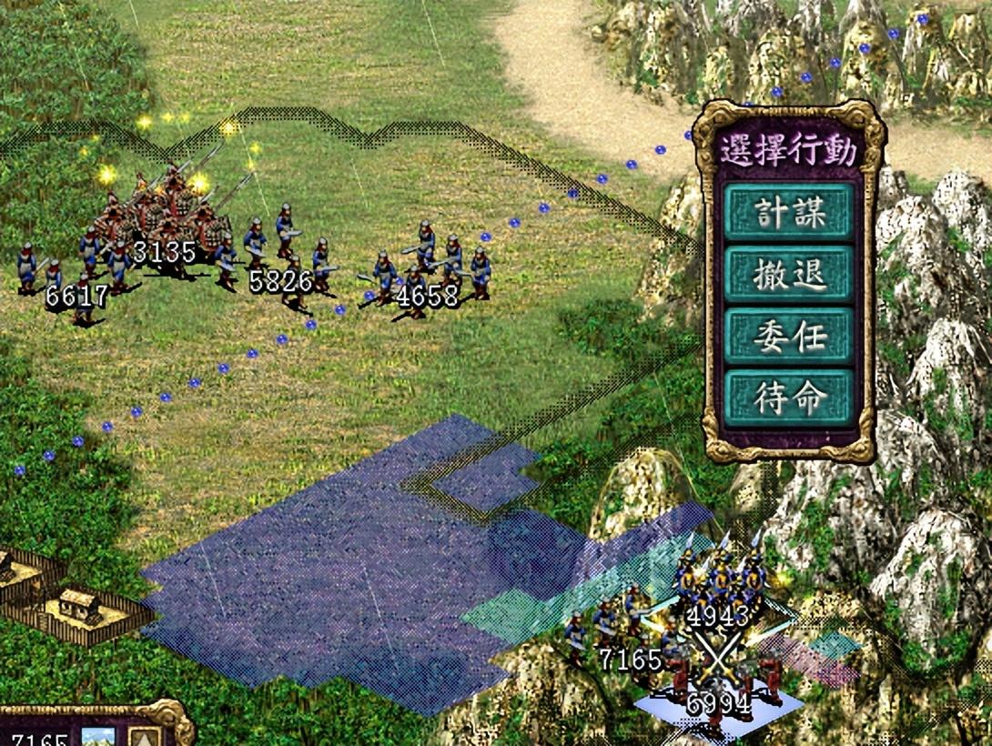 8、本作又一大特色,战法的开创。不同战法对应不同地形和兵种。例如“突击”可由步兵或骑兵使用,在平地特别合适,可以比通常攻击强1.8倍;又如 “搅乱”,平地只是一个○,可在山地/树林就是双○,就是特别适合,成功率会大大提升,一旦成功有较大机会混乱敌人!