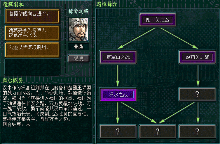 通关定军山之战后,揭开了下一关的面纱,继续是曹操历史上的苦战--汉水之战。
