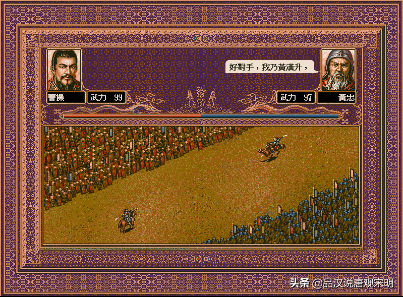 与霸王大陆的武将单挑不同,三国志5的武将单挑是不可以操作的。双方胜利失败,除了本身武力的差距外,运气也是非常重要的一个环节。