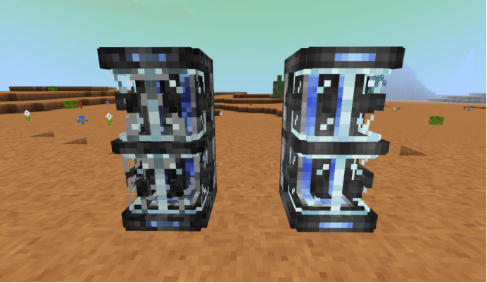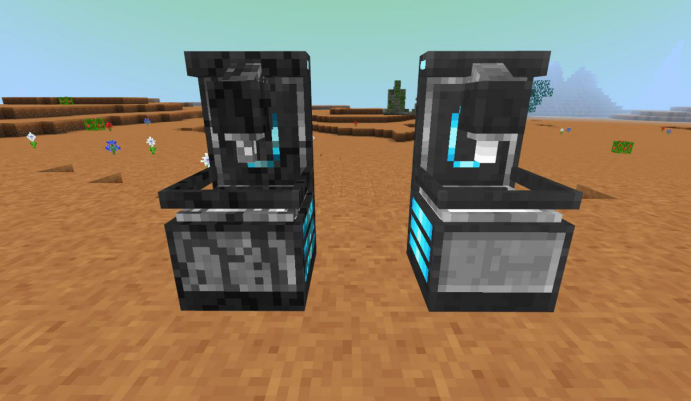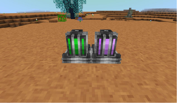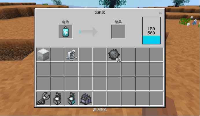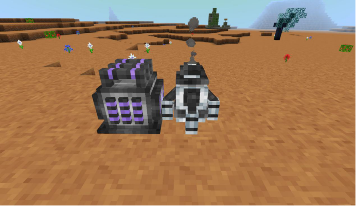 左侧为普通充能器,右侧为快速充能器,可以放置未满电的电池(不同级别的电池都可以放),一段时间后可以获取充满电量的电池。后者的充电速度会相对较快。充能器自身的电能则是需要发电机提供。