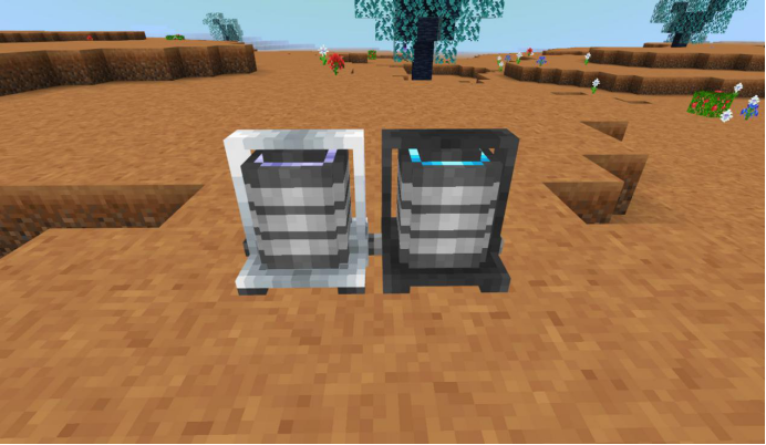 分为导电管(左侧)和电线(右侧)两种,都可以传输电能,前者的传导过程中会因为漏电损失大量电能,后者漏电较少。值得注意的是么,导线长度若是超过了15格会因为距离太长而断开连接,所以可以使用木棍敲一下确认是否保持通电,如果有电的话会有相应的粒子效果。