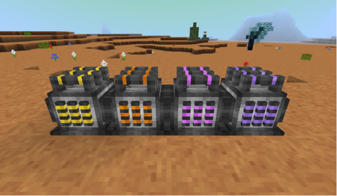 从左至右分别为能量石发电机、高级能量石发电机、暗能量发电机、高级暗能量发电机,能级依次上升,前两个可以使用多种矿物作为燃料发电,后两个使用暗物质发电。自身可储存一定电能,可通过电线连接机器为其供电,如果紧贴机器放置则不需要电线。