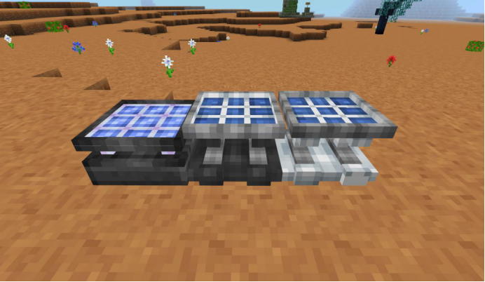 从左至右分别普通光能收集板、进阶光能收集板、高级光能收集板,能量转化效率依次上升。