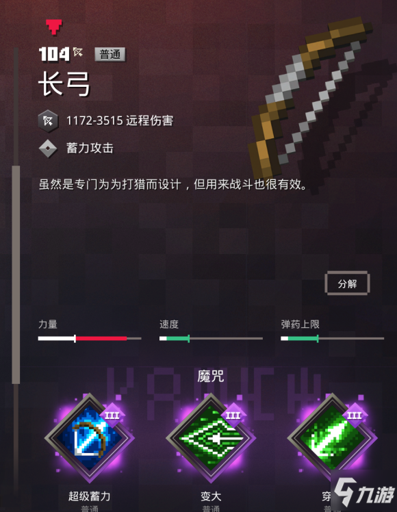 ⑤长弓系列 附魔(变大&穿透&蓄力)一发白字能有1W3的弓 并且有穿刺 能秒杀一般小怪和普通精英怪 主要是配合烟花 一发6W伤害 弱化下一发15W