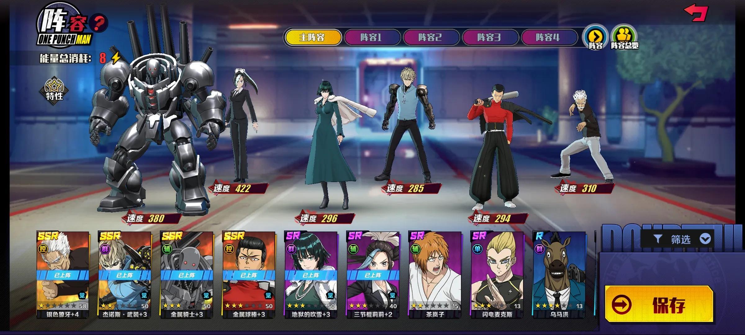 一拳超人正义执行。开服五天,我就给大家推荐一下我最近用的比较好的阵容。这个阵容推图和打pvp都比较稳。三节棍莉莉可以用大,让高爆发或者是单体高爆发的英雄优先行动,打出一波伤害。可以给银色獠牙优先叠被动后用大打出高额伤害,或者给龙卷打出群体伤害,并且有额外的加成。