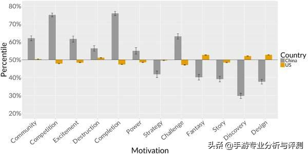 去年12月国外数据分析机构根据全球35万份调查问卷得出上图调差数据,国内玩家对竞技、养成(收集)、挑战、社群和刺激非常感兴趣。以深度养成为特色的《一拳超人》正是瞄准了国内最大的养成玩家群体。