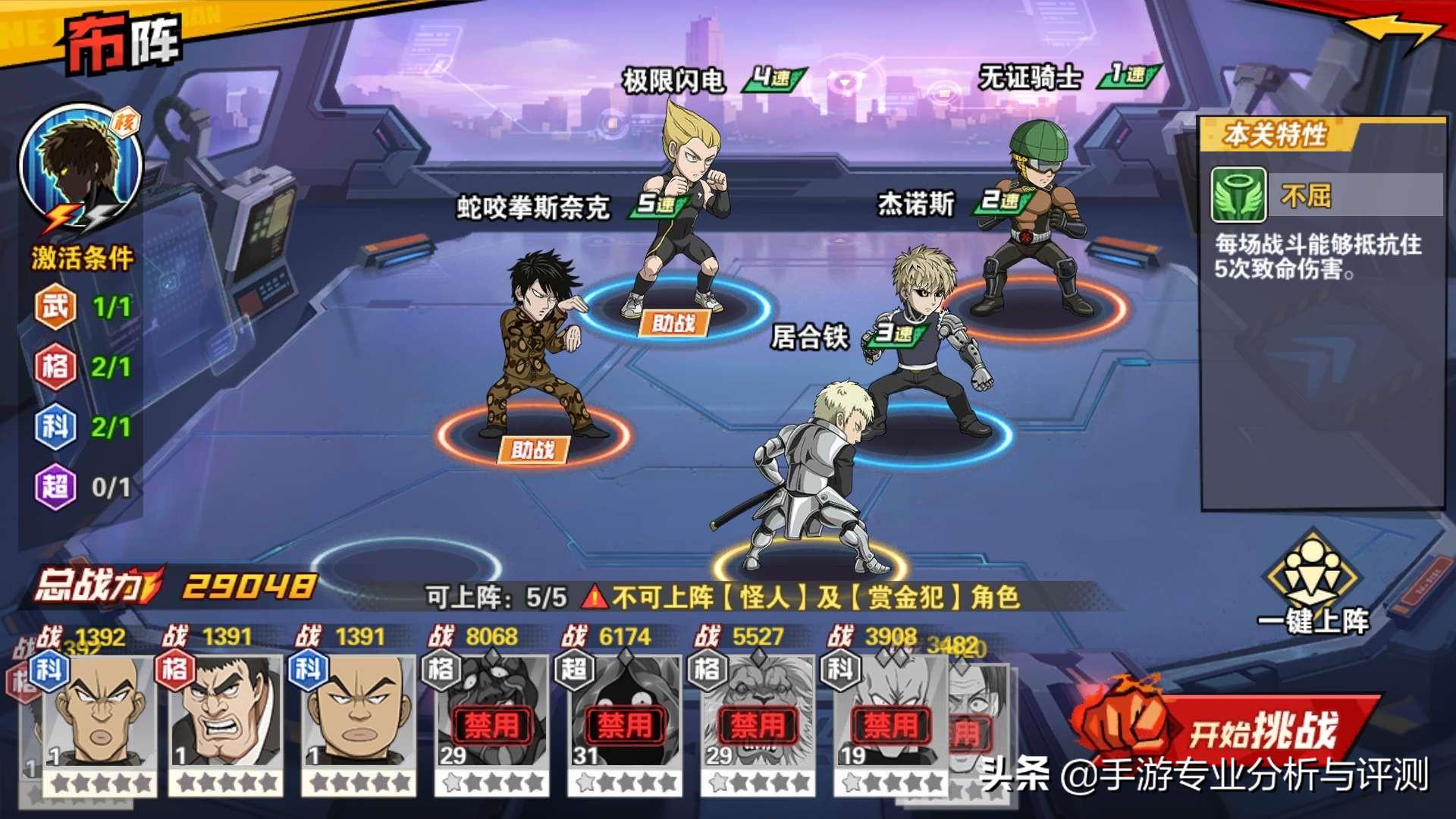 由日本集英社(Shueisha)领衔制作委员会监修出品,改编自日本人气动漫《一拳超人》的《一拳超人:最强之男》(以下简称《一拳超人》)于4月23日开启删档内测。与之前上线的众多漫改游戏一样,《一拳超人》也是一款带有一定策略性的回合制卡牌游戏。尽管游戏类型较常见,但经过笔者体验后,《一拳超人》仍是一款值得体验的游戏。