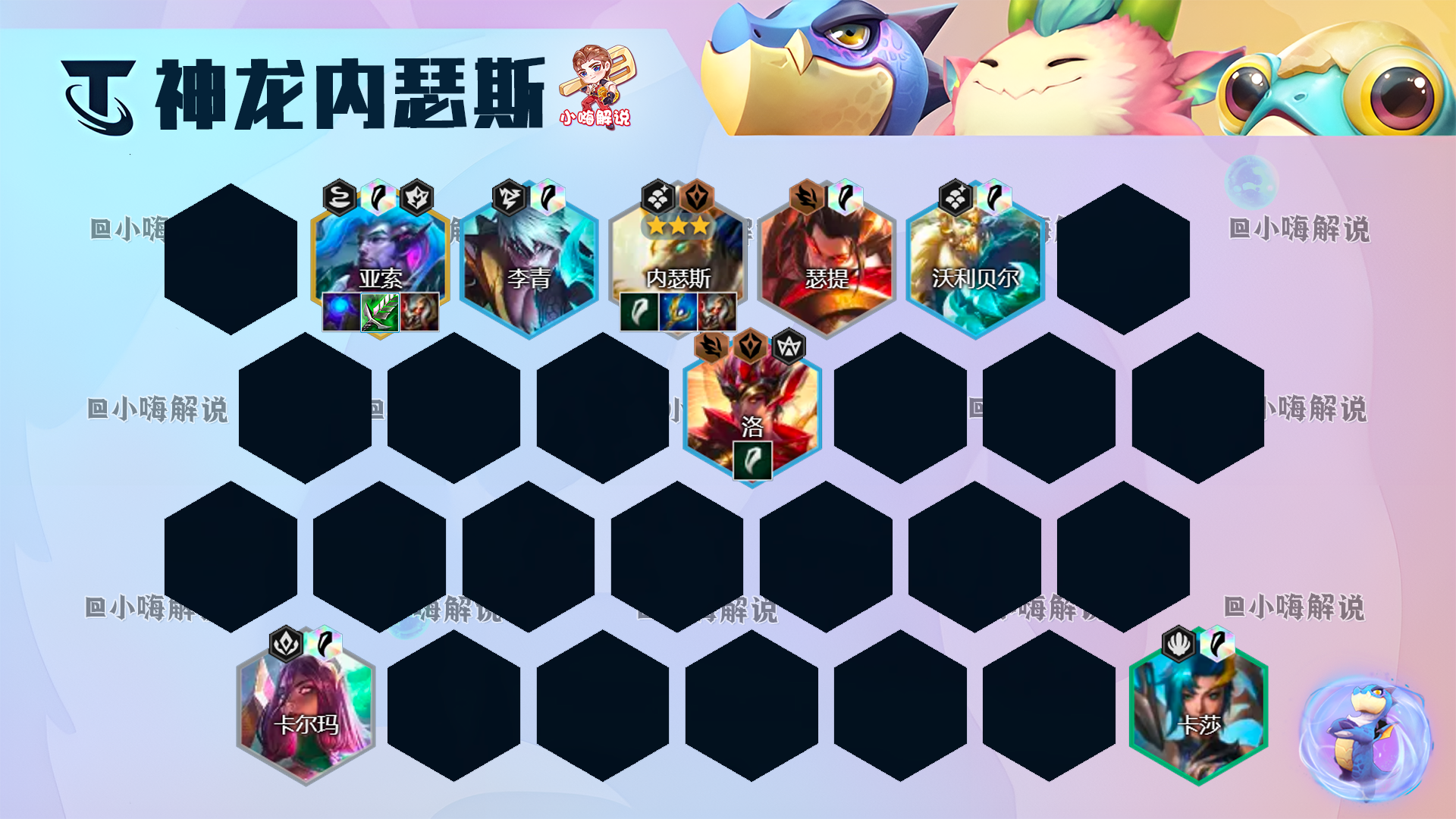 前言:大家好,我是小嗨。新版本有什么冷门上分阵容呢?今天给大家分享一套冷门上分阵容——神龙内瑟斯