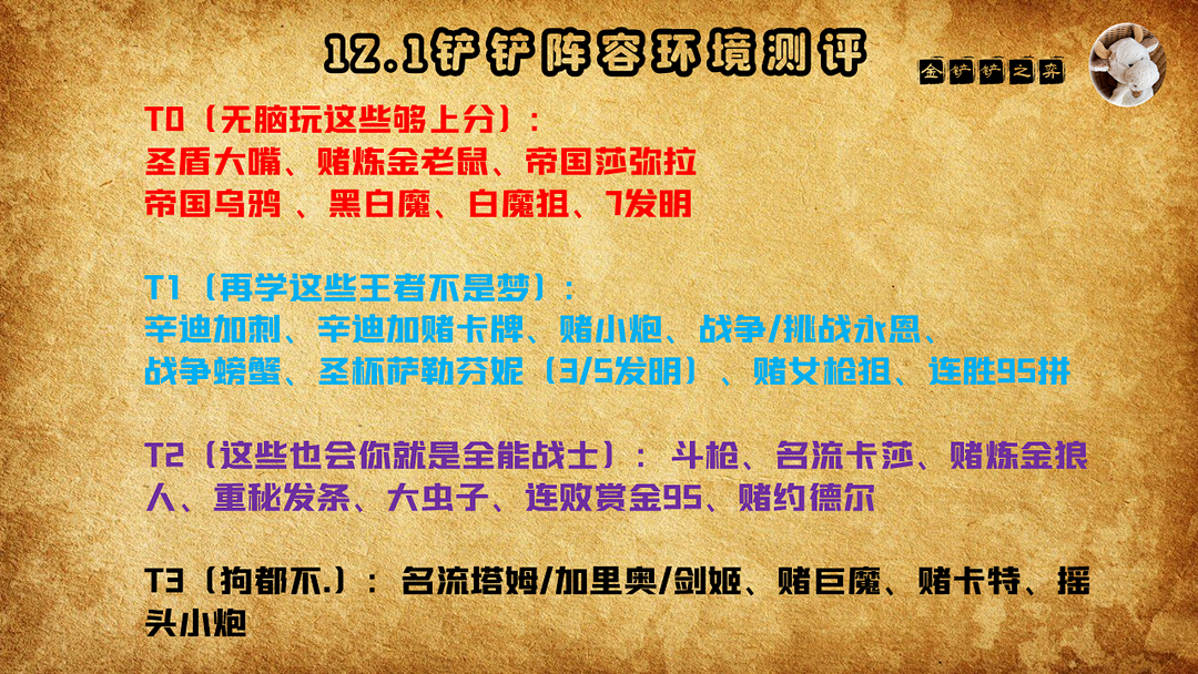 今天带来铲铲当前版本的环境测评《纯干货:12.1版本王者分段阵容测评及上分思路探讨》。