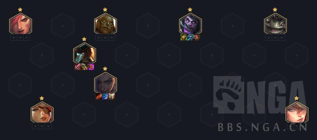 站位方面的话,前排英雄一字排开,金克丝放在中间位置。如果对手有钩子和刺客,则将一个前排英雄放在最后一排。大后期的话灵活应变,可以找5费高质量的单卡,或者搭配一个名流吃buff。