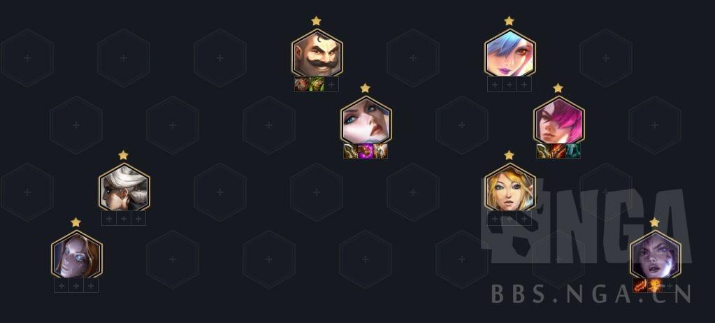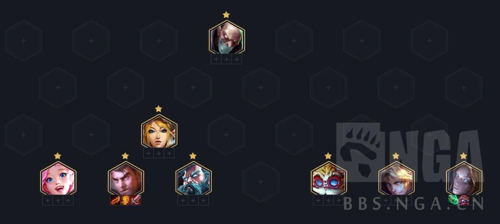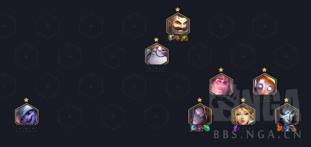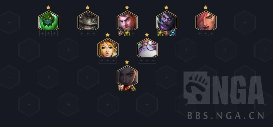 这个阵容则使用杰斯作为远程的carry角色,其余位置则是补充伤害和功能性。发明家可以为队伍带来额外的战力,有5发明家必上5发明家,如果合成了发明家纹章达成7发明家羁绊,那将是这个阵容的完全体了,可以召唤机械巨龙出战。
