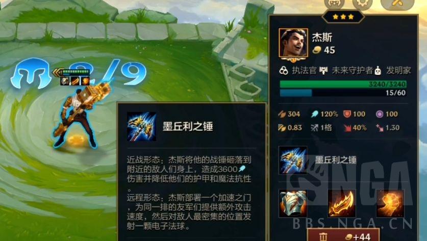 杰斯是目前为止最有趣的英雄之一,未来守护者羁绊让他根据放置的位置,拥有近战和远程两种形态,肉杰斯是一个可行的套路,C位杰斯也很强。