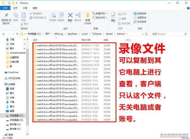 当然了,配置文件占用的空间都是非常小的。占空间比较大的就是录像文件和崩溃报告文件了,录像文件其实还好,一般都只会保存20场的游戏录像,如果吃鸡了单场比赛的文件最大也就三十几兆,20场的文件一般来说也就300M左右的样子,其实也不必太在意。当然,对录像文件不感冒的玩家可以选择删除,游戏内同样也可以进行删除,不过只能一场一场删除有些麻烦罢了。