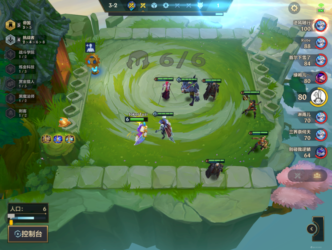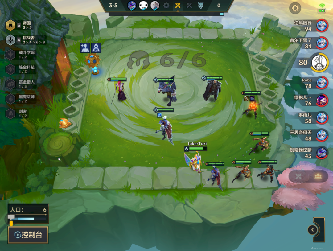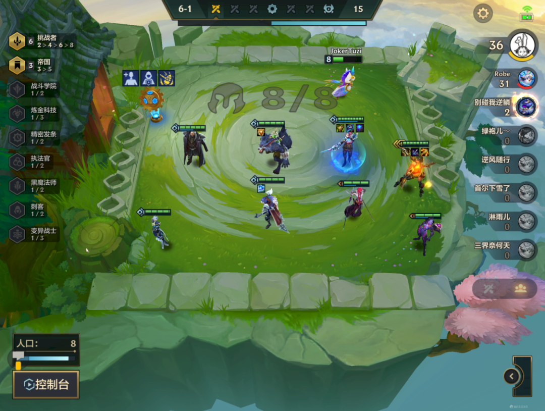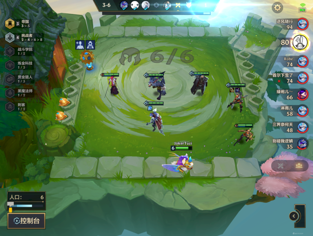 6-1/6-2拉8人口,视经济情况而定,后面8人口补足6挑战即可,有帝国转职的话5帝国必开,有挑战转职可以下掉一张体系卡,上2黑魔/2执法/2精密均可。