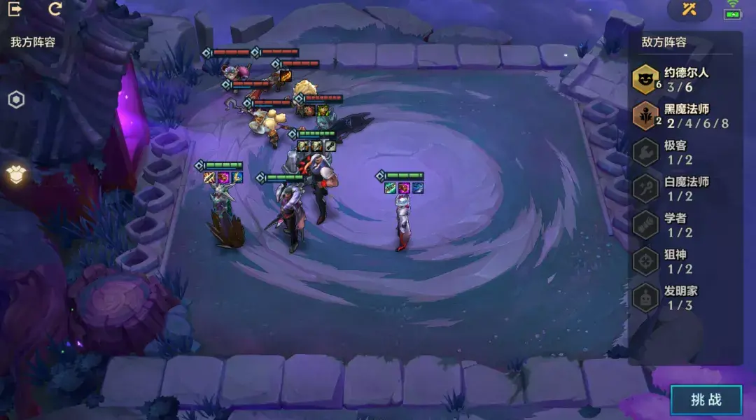 第二关敌方6约德尔人羁绊,看来是想召唤小法失败的产物,我方3辛迪加与2保镖,这关属于完虐对面的对局,非常简单。