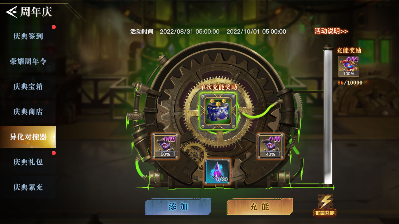 在异化对撞机里,玩家可以将用不到的低级异化券(品质在30%机率的+10异化券以上)成对投入对撞机中,有几率开出+14异化券、淬炼配方,并且保底添加异化能量。