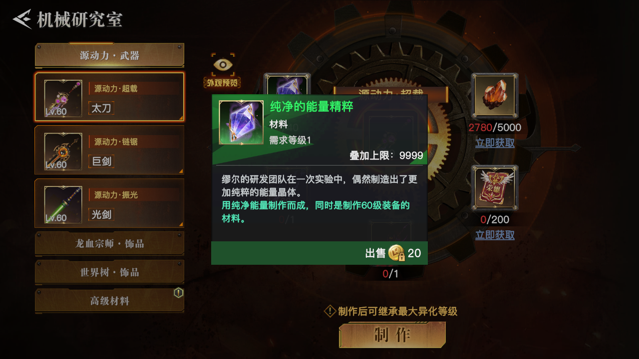 祸源禁区掉落专属副本材料纯净能量,可合成纯净的能量精粹用于升级60级金魔武【源动力】和60级输出毕业饰品【龙血宗师】!